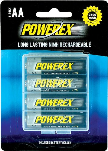 Powerex AA 2700mAh NiMH Rechargeable Batteries w/holder- 4 Batteries Per Pack